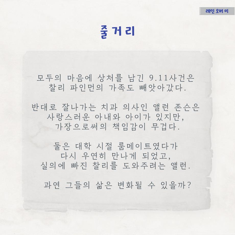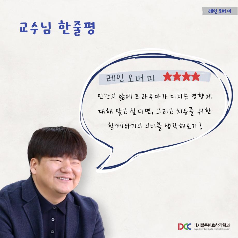 본문 시작 홈으로 MCC News 학과소개 교수소개 학과과정 MCC News MCC SNS 홈페이지가이드 학과 및 재학생 학과 및 재학생 교수 및 졸업생 미디어 정보통 학과 및 재학생 페이스북 트위터 프린트 디콘창이 추천하는 영화 추천 6선 1탄 디지털콘텐츠창작학과 4369 2022-12-08 세명대학교 디지털콘텐츠창작학과가 추천하는 영화 추천 6선 시리즈가 시작됩니다! 1탄의 추천 영화는 ‘레인 오버 미’입니다 😃 영화 추천 시리즈에서는 추천 영화의 줄거리, 스틸컷, 감상 가능한 사이트, 교수님의 한줄평까지 한눈에 볼 수 있습니다. 짧지만 알찬 정보는 담았으니, 다양한 장르의 추천 영화를 감상해 보시고 여러분들의 한줄평을 남겨주세요! 앞으로 올라올 5편도 학우분들의 많은 관심 부탁드립니다❤ 목록 이전부산중구스토리공모전-디지털콘텐츠창작학과 학생 5명 수상 다음 제20회 DCC콘텐츠페스티벌 사진첩 1탄! 담당부서 : 미디어콘텐츠창작학과 담당자 : - 연락처 : 043-649-1741 최종수정일 : 2024-10-26 만족도조사 만족도 조사 이 페이지에서 제공하는 정보에 대하여 만족하시나요? 매우만족 만족 보통 불만족 매우불만족