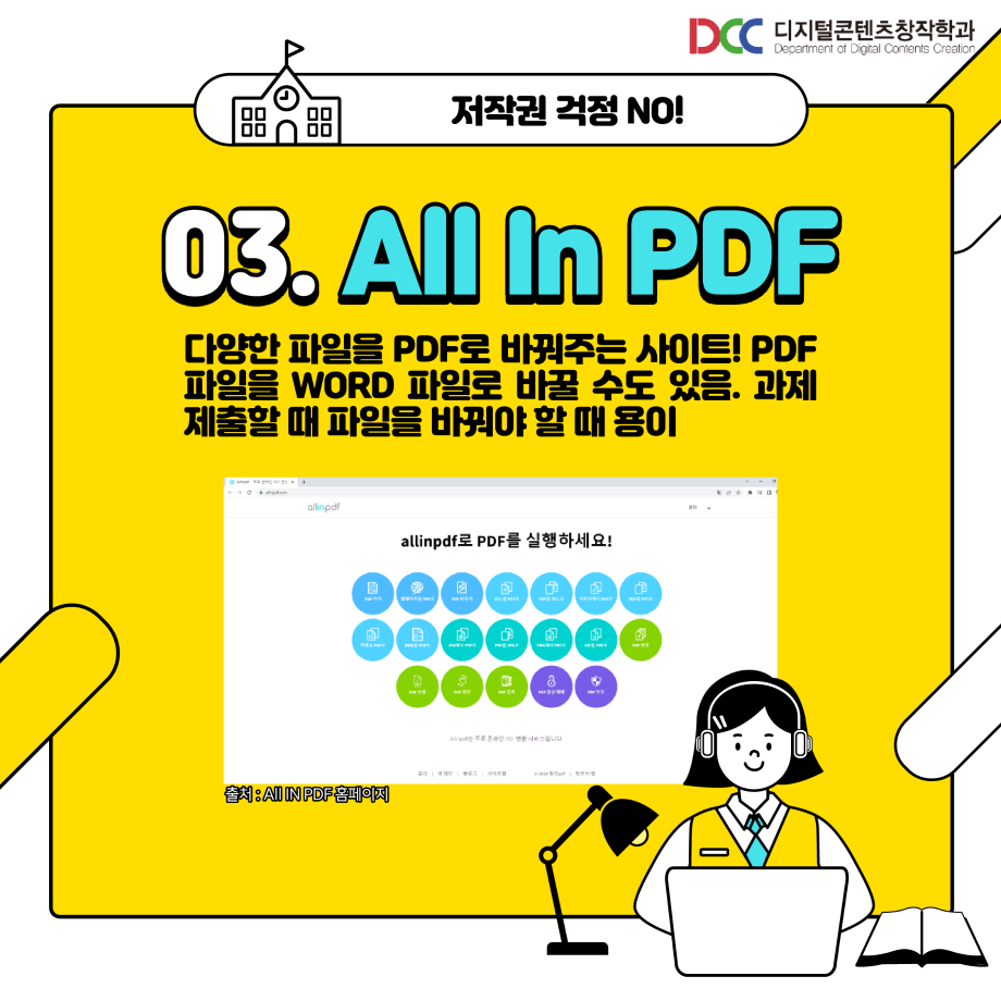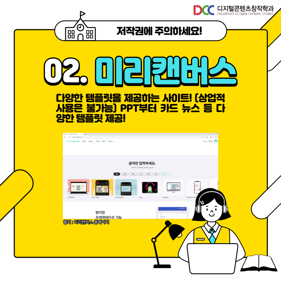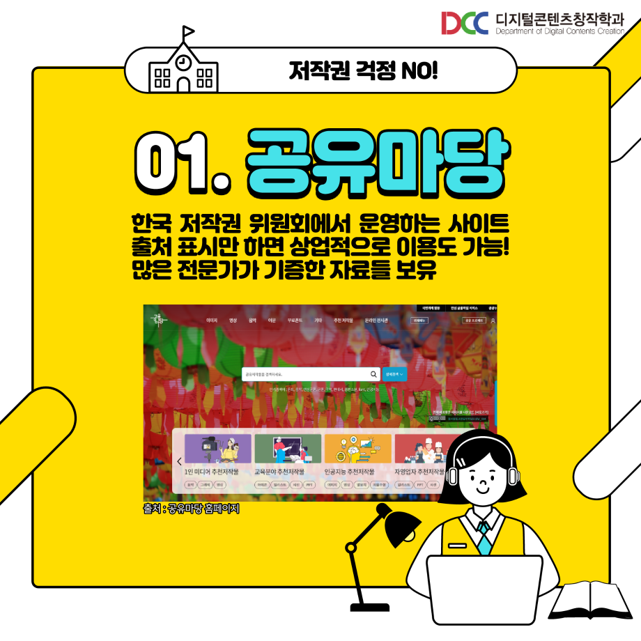 본문 시작 홈으로 MCC News 학과소개 교수소개 학과과정 MCC News MCC SNS 홈페이지가이드 학과 및 재학생 학과 및 재학생 교수 및 졸업생 미디어 정보통 학과 및 재학생 페이스북 트위터 프린트 과제 할 때 쓰기 좋은 사이트 디지털콘텐츠창작학과 4859 2023-06-02 과제할 때 사용하기 좋은 사이트를 공유해드려요! 저작권 걱정 없는 사이트들을 정리해봤습니다! 학우 분들의 과제 만점을 위해! 저작권 걱정 없는 사이트를 확인해보세요 :) 목록 이전제11회 24시간 필름페스티벌 엔딩 영상 다음 🍭 오늘의 디콘 15탄 🍭 담당부서 : 미디어콘텐츠창작학과 담당자 : - 연락처 : 043-649-1741 최종수정일 : 2024-10-26 만족도조사 만족도 조사 이 페이지에서 제공하는 정보에 대하여 만족하시나요? 매우만족 만족 보통 불만족 매우불만족