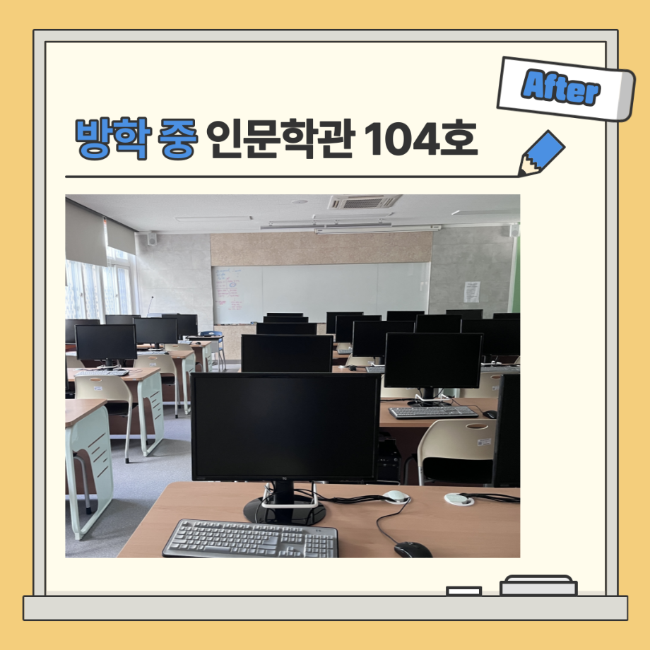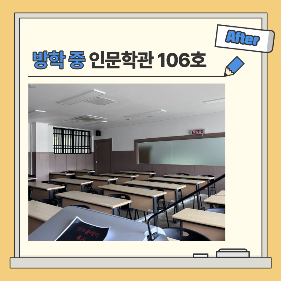 본문 시작 홈으로 MCC News 학과소개 교수소개 학과과정 MCC News MCC SNS 홈페이지가이드 학과 및 재학생 학과 및 재학생 교수 및 졸업생 미디어 정보통 학과 및 재학생 페이스북 트위터 프린트 🏫 강의실 Before & After 🏫 디지털콘텐츠창작학과 3456 2023-06-30 학기 중과 방학 중의 인문학관 강의실 모습입니다! 북적북적하던 강의실이 방학이 되자마자 텅 빈 모습을 볼 수 있는데요! 텅 빈 강의실을 보니 큰 허전함이 느껴지는 것 같아요😥 디콘창 학우분들! 하계 방학동안 즐겁고 보람찬 방학을 즐기시길 바랍니다 :) 목록 이전🍭 오늘의 디콘 16탄 🍭 다음 세명대학교 홈페이지 공지사항 정리 담당부서 : 미디어콘텐츠창작학과 담당자 : - 연락처 : 043-649-1741 최종수정일 : 2024-10-26 만족도조사 만족도 조사 이 페이지에서 제공하는 정보에 대하여 만족하시나요? 매우만족 만족 보통 불만족 매우불만족