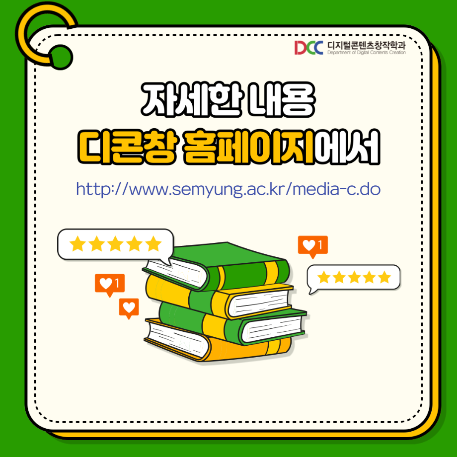본문 시작 홈으로 MCC News 학과소개 교수소개 학과과정 MCC News MCC SNS 홈페이지가이드 학과 및 재학생 학과 및 재학생 교수 및 졸업생 미디어 정보통 학과 및 재학생 페이스북 트위터 프린트 학생회가 알려주는 연계전공📚 디지털콘텐츠창작학과 4695 2023-07-27 디지털콘텐츠창작학과와 연계할 수 있는 전공이 있다고⁉ 디콘창 학생회가 연계전공에 대해 알려드려요!! 다양한 전공수업을 배워보며 다양한 전공을 배워보는 건 어떨까요? 목록 이전디콘창이 추천하는 영화 추천 6선 5탄 다음 📝디콘창 학생회 월말결산 담당부서 : 미디어콘텐츠창작학과 담당자 : - 연락처 : 043-649-1741 최종수정일 : 2024-10-26 만족도조사 만족도 조사 이 페이지에서 제공하는 정보에 대하여 만족하시나요? 매우만족 만족 보통 불만족 매우불만족
