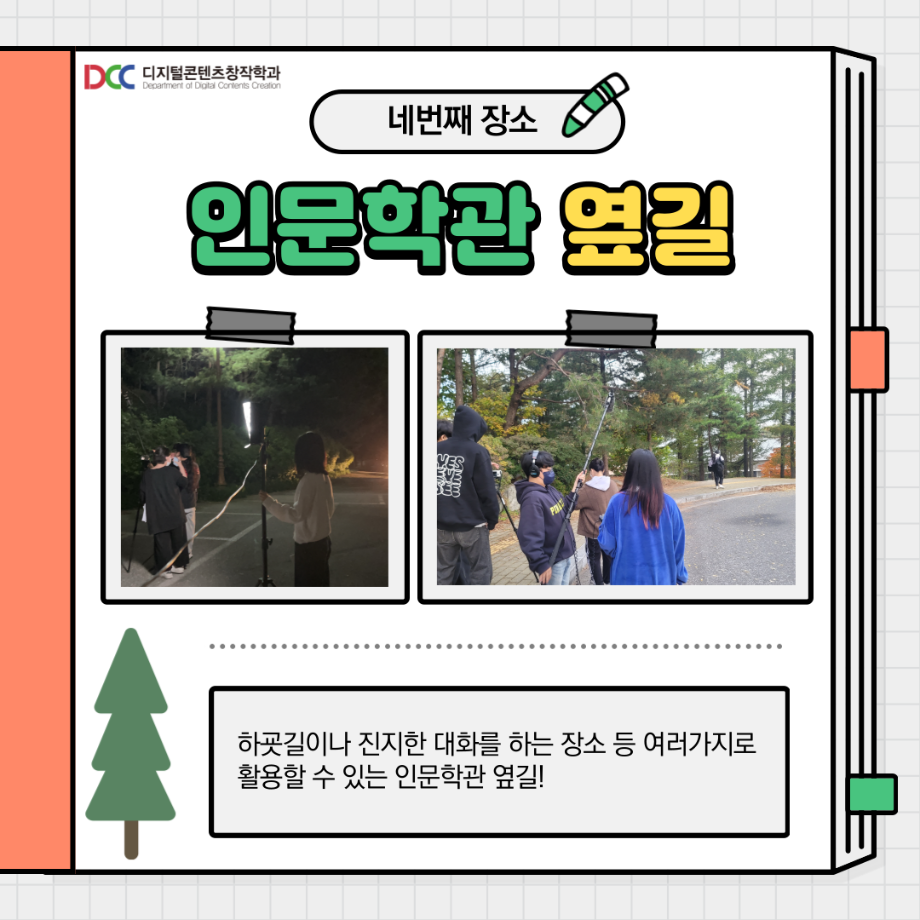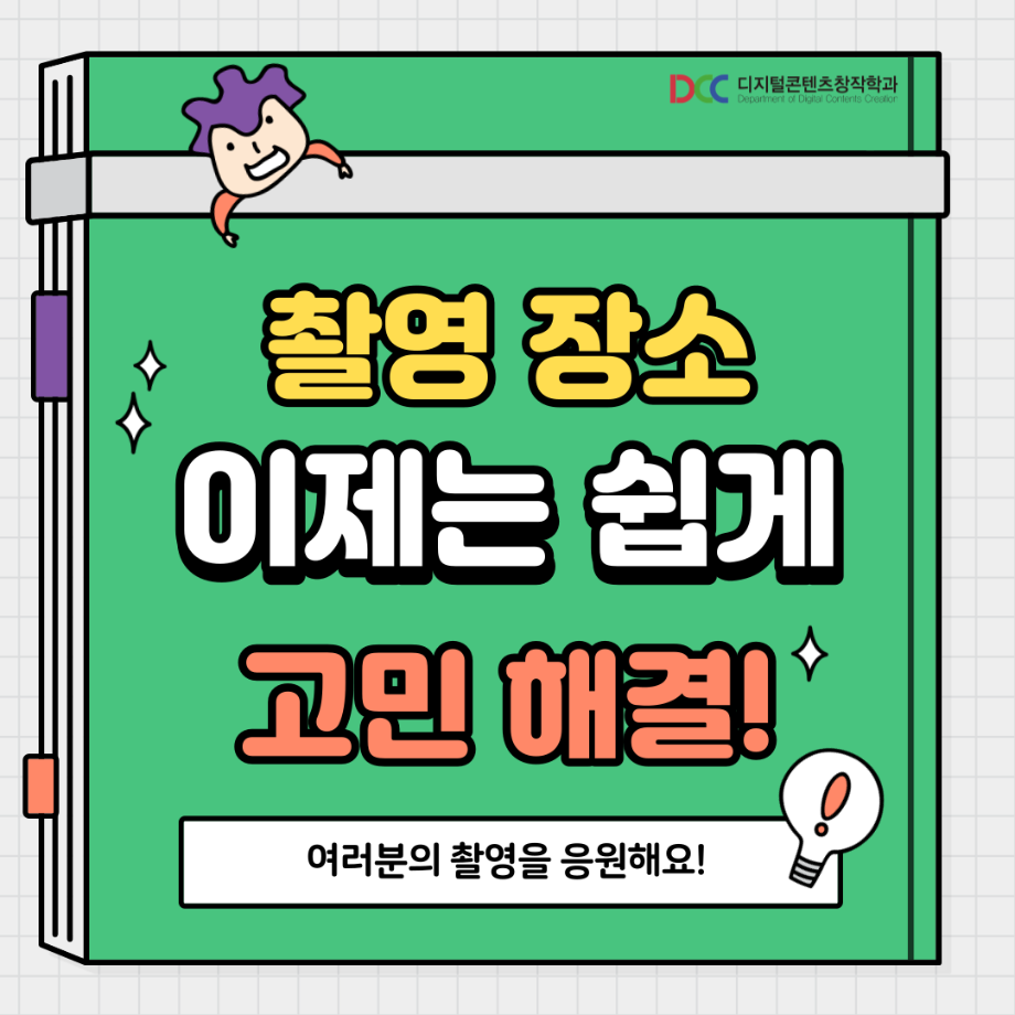 본문 시작 홈으로 MCC News 학과소개 교수소개 학과과정 MCC News MCC SNS 홈페이지가이드 학과 및 재학생 학과 및 재학생 교수 및 졸업생 미디어 정보통 학과 및 재학생 페이스북 트위터 프린트 교내 촬영 장소 추천! 디지털콘텐츠창작학과 4628 2023-08-18 촬영을 해야 하는데 장소가 고민인 디콘창 학생들을 위해 준비했습니다! 학교 안에서의 촬영 장소를 추천해 드려요! 개강이 얼마 남지 않은 만큼 참고하시면 좋을 것 같습니다! 목록 이전🍭 오늘의 디콘 20탄 🍭 다음 📚디콘창 세부전공 소개📚 담당부서 : 미디어콘텐츠창작학과 담당자 : - 연락처 : 043-649-1741 최종수정일 : 2024-10-26 만족도조사 만족도 조사 이 페이지에서 제공하는 정보에 대하여 만족하시나요? 매우만족 만족 보통 불만족 매우불만족