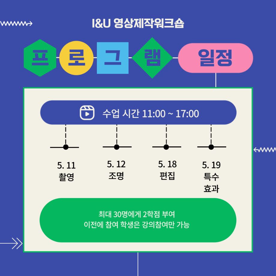 본문 시작 홈으로 MCC News 학과소개 교수소개 학과과정 MCC News MCC SNS 홈페이지가이드 학과 및 재학생 학과 및 재학생 교수 및 졸업생 미디어 정보통 학과 및 재학생 페이스북 트위터 프린트 🚩2024 I&U 프로그램 '영상제작워크숍'🚩 디지털콘텐츠창작학과 2912 2024-05-22 디지털콘텐츠창작학과에서는 2024년 5월 중순 주말동안 '영상제작워크숍'을 성공적으로 진행하였습니다. 이번 워크숍에서는 영상 제작의 모든 과정에 대해 깊이 이해할 수 있는 기회와 동시에 이수한 학생들에게 2학점을 수여하였습니다. 프로그램을 참여한 학생들은 이러한 과정을 학습하고 실습하는 시간을 가지며 본인의 창의적 역량을 키울 수 있었습니다. 참여하신 학생 여러분들 고생하셨습니다. 목록 이전🚩청룡체전 먹거리부스🚩 다음 🌹디지털콘텐츠창작학과 성년의 날 행사🌹 담당부서 : 미디어콘텐츠창작학과 담당자 : - 연락처 : 043-649-1741 최종수정일 : 2024-10-26 만족도조사 만족도 조사 이 페이지에서 제공하는 정보에 대하여 만족하시나요? 매우만족 만족 보통 불만족 매우불만족