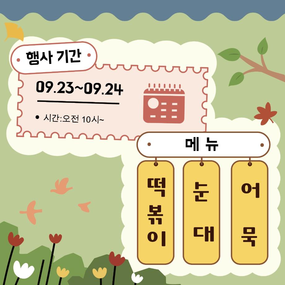 본문 시작 홈으로 MCC News 학과소개 교수소개 학과과정 MCC News MCC SNS 홈페이지가이드 학과 및 재학생 학과 및 재학생 교수 및 졸업생 미디어 정보통 학과 및 재학생 페이스북 트위터 프린트 오랜만에 찾아온 미콘먹거리! 미디어콘텐츠창작학과 2224 2024-09-23 미디어콘텐츠창작학과 학생회에서는 이번 제 32회 청룡축전이 열리는 9월23일, 24일 오전 10시부터 뭐든지 광장에서 먹거리 부스를 오픈합니다! 매콤, 짜장 떡볶이, 어묵꼬치, 순대까지 맛있는 먹거리 가득 있으니 많이 오셔서 한 입 하고 가세요!! 목록 이전2024년 추석맞이 특별 이벤트 다음 2024년도 세명대학교 인문예술대학 문화콘텐츠 창작공모전 개최 담당부서 : 미디어콘텐츠창작학과 담당자 : - 연락처 : 043-649-1741 최종수정일 : 2024-10-26 만족도조사 만족도 조사 이 페이지에서 제공하는 정보에 대하여 만족하시나요? 매우만족 만족 보통 불만족 매우불만족